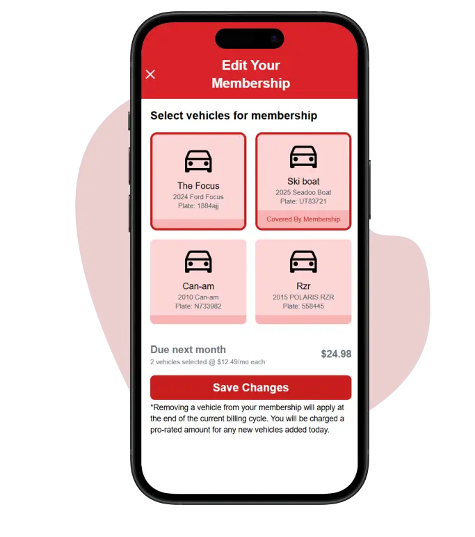 vehicles, with additional vehicles covered for just $12.49 each. Members pay no delivery fees, making it